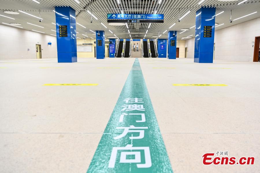 Photo taken on Sept. 2, 2021 shows the way to the departure hall at Qingmao Checkpoint in Zhuhai, South China's Guangdong Province. The Qingmao Checkpoint linking the Macao Special Administrative Region (SAR) and the mainland's Guangdong province will be open on Sept. 8. It was designed to offer overflow capacity in support of the nearby Border Gate Checkpoint. (Photo: China News Service/Chen Jimin)