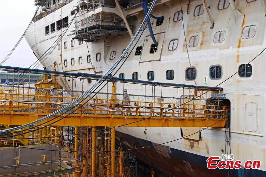 Main hull of China's first large-scale cruise ship to be finished (4)