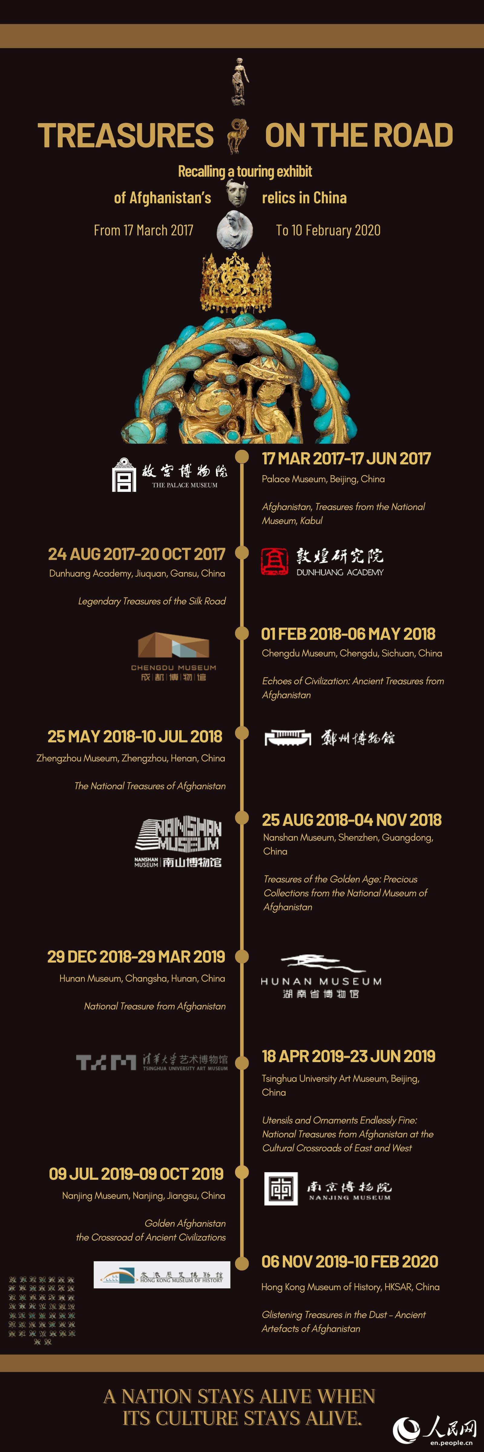 Timeline of the touring exhibit of Afghanistan's relics in China. (People's Daily Online/ Zhong Wenxing)
