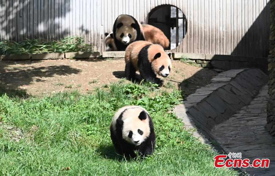 Giant pandas have fun during the early autumn at the Shenshuping Base of China Conservation and Research Center for Giant Panda, Southwest China's Sichuan Province, Sept. 3, 2021. (Photo: China News Service/An Yuan)