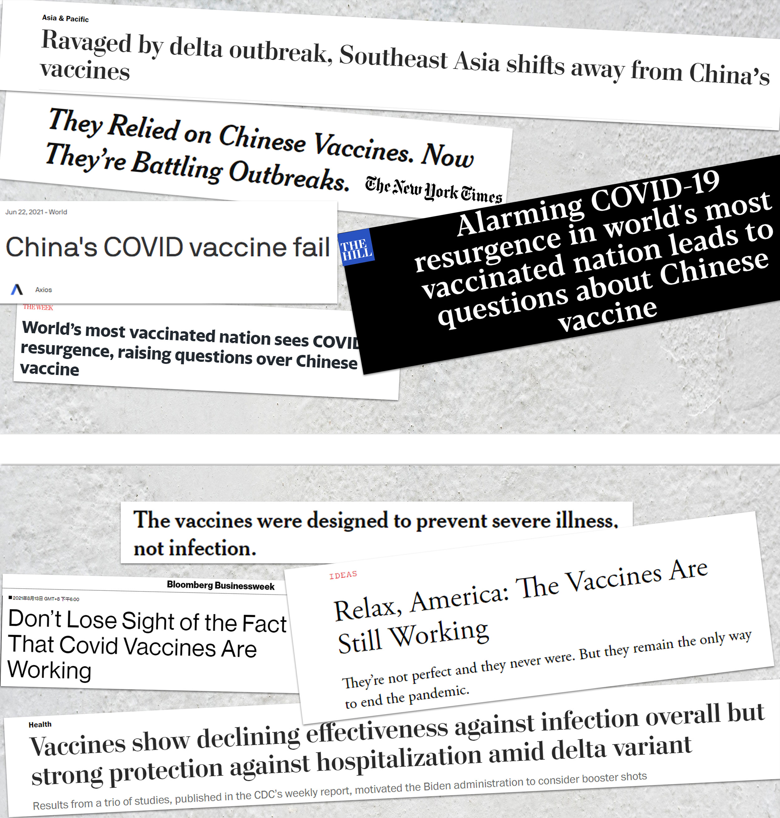 “They Relied on Chinese Vaccines. Now They’re Battling Outbreaks,” read one New York Times article published on June 22, 2021. By juxtaposing Chinese vaccines and epidemic situations in Mongolia, the Seychelles, and Chile, the New York Times intended to convey a biased and even heinous message that China was to blame for the resurgence of cases in multiple countries, regardless of the vaccination rate and other factors such as the emergence of new variants.