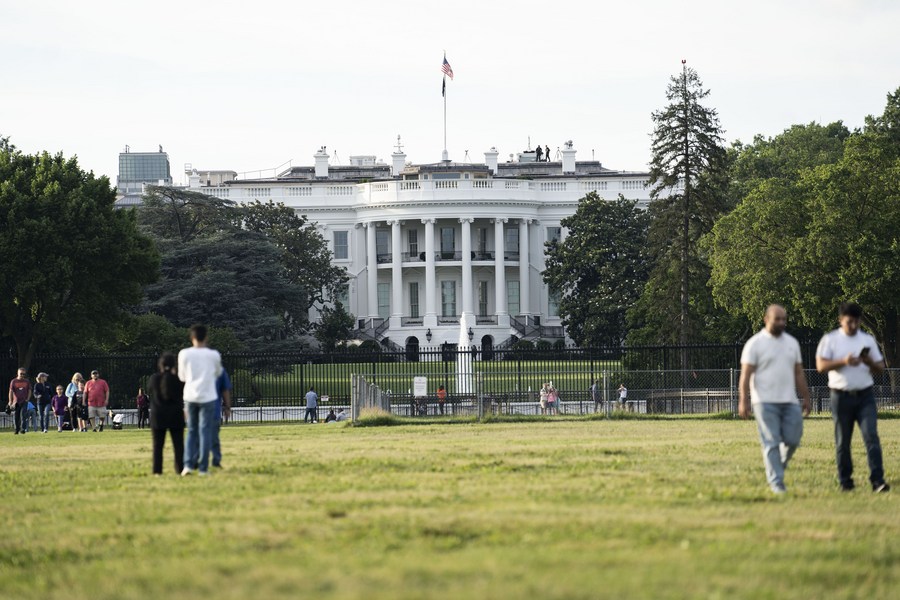 People wander near the White House in Washington, D.C., the United States, June 22, 2021. (Xinhua/Liu Jie)