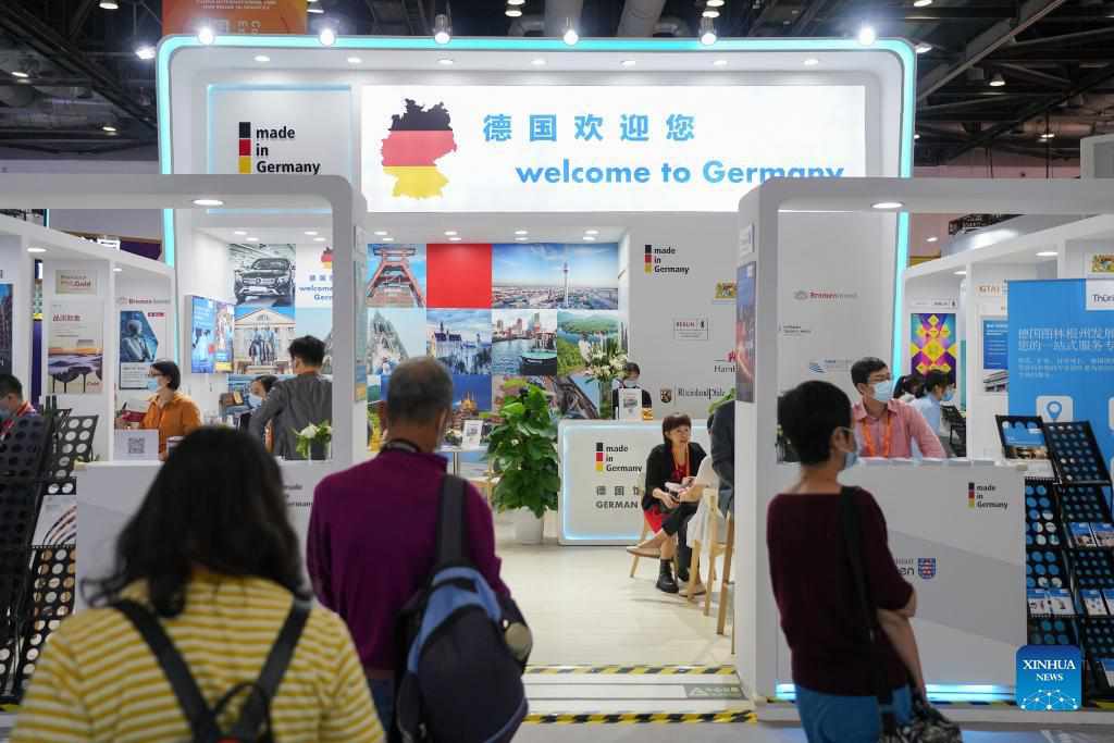 Visitors tour the Germany exhibition booth during the 2021 China International Fair for Trade in Services (CIFTIS) in Beijing, capital of China, Sept. 5, 2021. (Xinhua/Wang Tiancong)