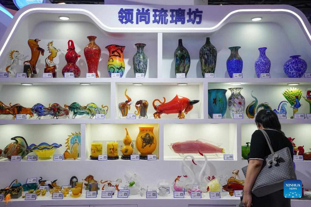 Visitors tour the Shandong exhibition booth during the 2021 China International Fair for Trade in Services (CIFTIS) in Beijing, capital of China, Sept. 5, 2021. (Xinhua/Wang Tiancong)