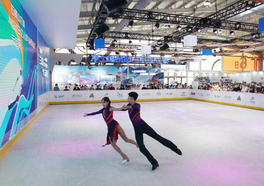 A skating performance is staged during the World Winter Sports (Beijing) Expo 2021 at Shougang Park in Beijing, capital of China, Sept. 3, 2021. (Xinhua/Zhang Chenlin)