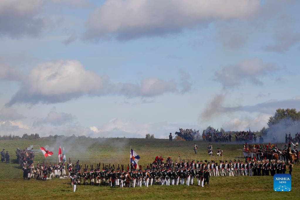 Participants take part in the reenactment of the 1812 Battle of Borodino between Russia and the invading French army near the Borodino village, outside Moscow, Russia, on Sept. 5, 2021. (Photo by Alexander Zemlianichenko Jr/Xinhua)