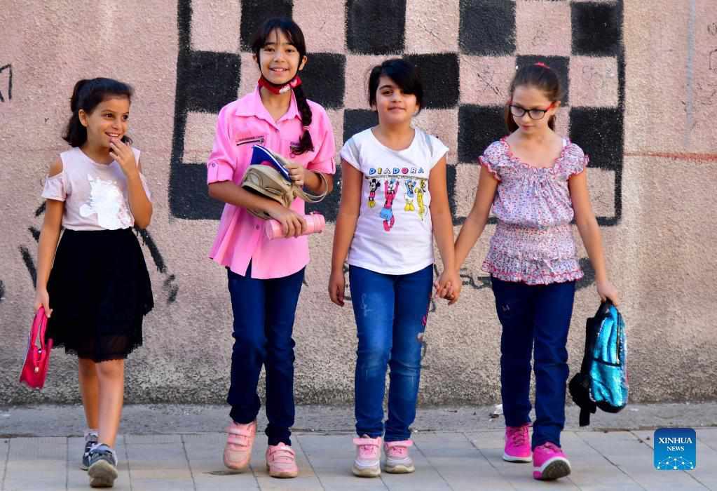 Children are seen at school on the first day of the new academic year in Damascus, Syria, on Sept. 5, 2021. (Photo by Ammar Safarjalani/Xinhua)