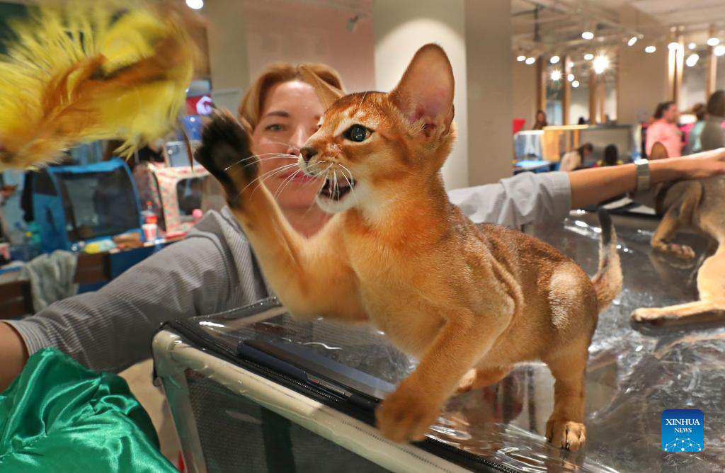Photo taken on Sept. 4, 2021 shows a cat during a cat show held in Minsk, Belarus. (Photo by Henadz Zhinkov/Xinhua)