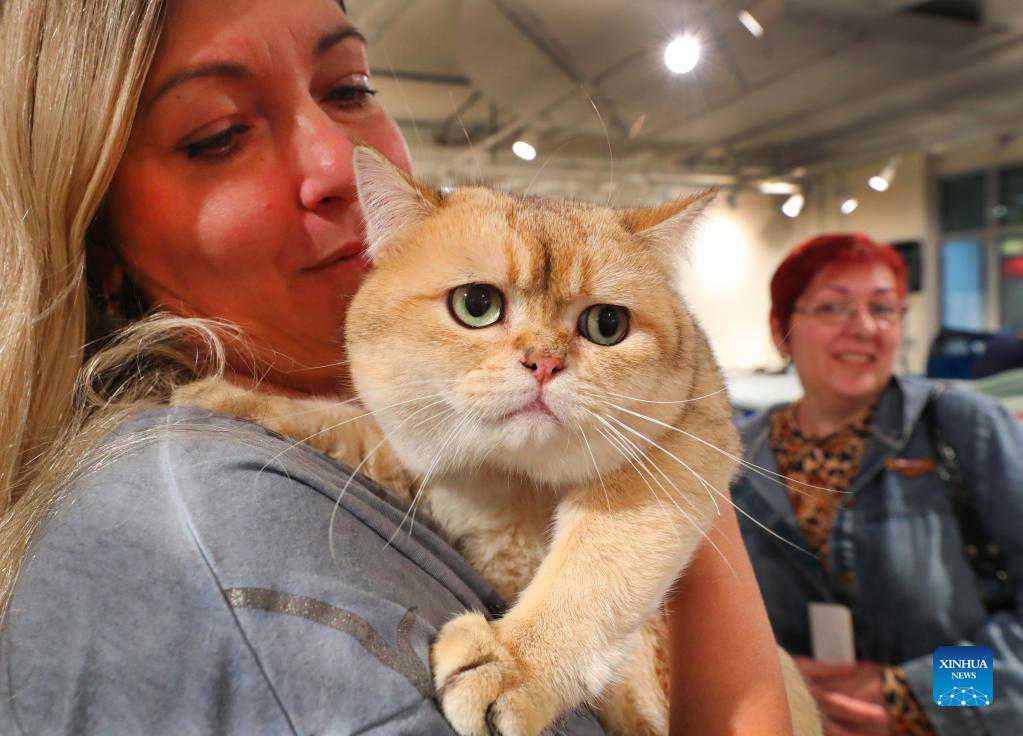Photo taken on Sept. 4, 2021 shows a cat during a cat show held in Minsk, Belarus. (Photo by Henadz Zhinkov/Xinhua)