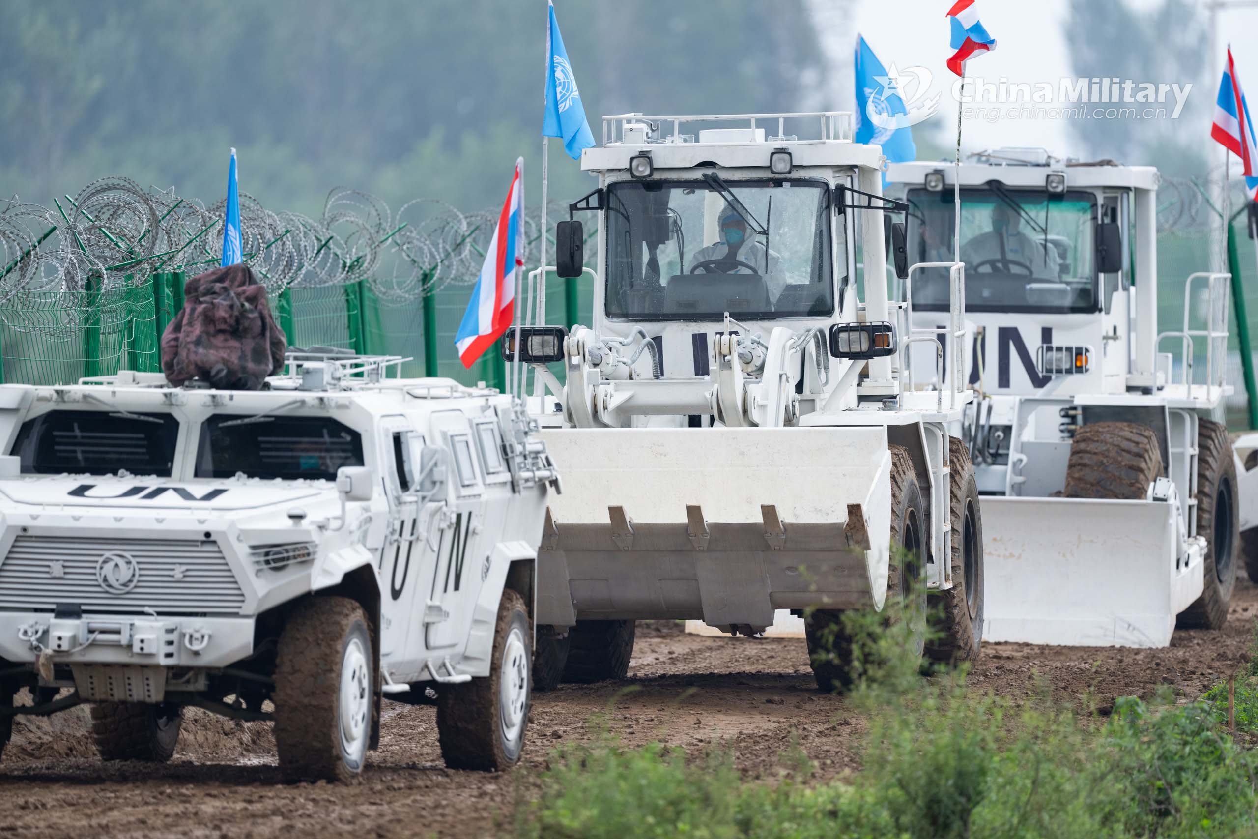 Peacekeepers and their armored vehicles are all settled in Queshan County of Central China's Henan Province on the morning of September 6, 2021. More than 1,000 troops from China, Mongolia, Pakistan and Thailand will participate in the "Shared Destiny-2021" UN peacekeeping field training exercise in China from September 6 to 15, 2021. (eng.chinamil.com.cn/Photo by Wan Quan)