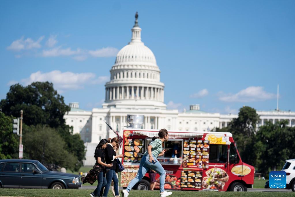 People are seen near the Capitol building in Washington, D.C., the United States, on Sept. 6, 2021. The total number of COVID-19 cases in the United States topped 40 million on Monday, according to data from the Johns Hopkins University. (Xinhua/Liu Jie)