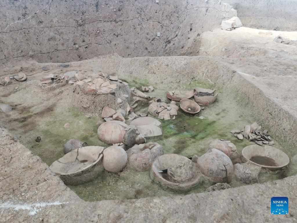 Photo taken on Oct. 23, 2020 shows earthenware objects excavated at Qiaotou site in Yiwu, east China's Zhejiang Province. (Xinhua/Feng Yuan)