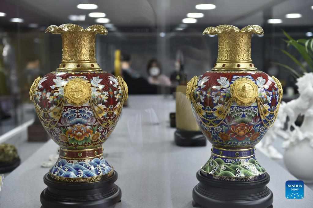 Photo taken on Sept. 6, 2021 shows Chinese-style artworks in Shougang Park during the China International Fair for Trade in Services (CIFTIS) in Beijng, capital of China. (Xinhua/Lu Peng)