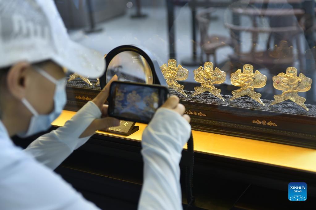 A visitor takes photos of exhibits in Shougang Park during the China International Fair for Trade in Services (CIFTIS) in Beijng, capital of China, Sept. 6, 2021. (Xinhua/Lu Peng)