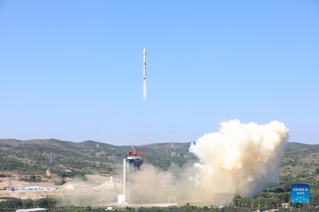 A Long March-4C rocket carrying the satellite Gaofen-5 02 blasts off from the Taiyuan Satellite Launch Center in north China's Shanxi Province, Sept. 7, 2021. China sent the new Earth observation satellite into space from the Taiyuan Satellite Launch Center at 11:01 a.m. Tuesday (Beijing Time). (Photo by Zheng Bin/Xinhua)