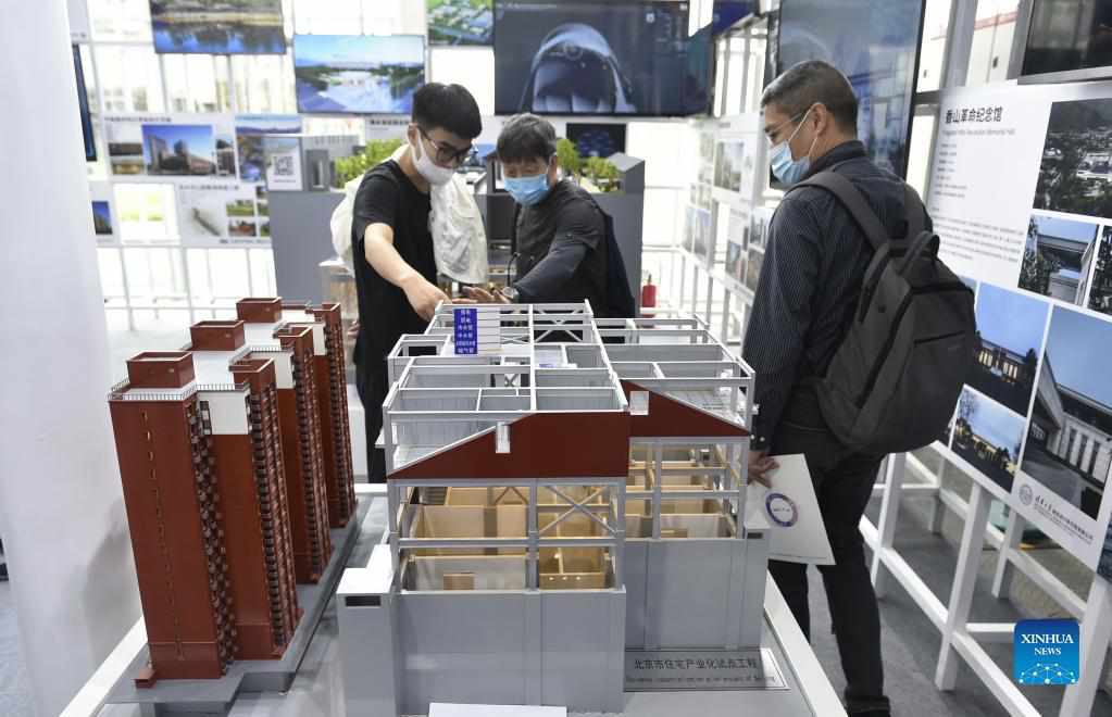 Visitors view building models at the China International Fair for Trade in Services (CIFTIS) in Beijing, capital of China, Sept. 6, 2021. (Xinhua/Lu Peng)