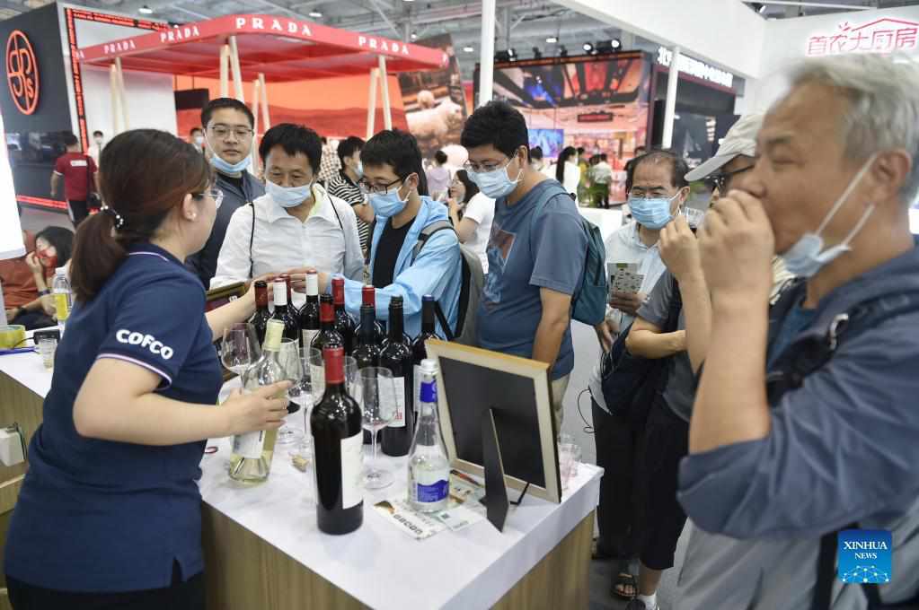 Visitors taste wine at the China International Fair for Trade in Services (CIFTIS) in Beijing, capital of China, Sept. 6, 2021. (Xinhua/Lu Peng)