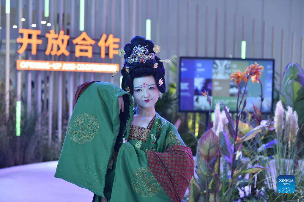 A guest presents traditional costumes at the China International Fair for Trade in Services (CIFTIS) in Beijing, capital of China, Sept. 4, 2021. (Xinhua/Lu Peng)