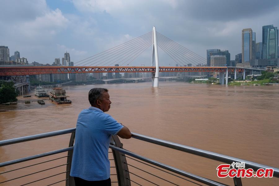 A man watches the flood-affected area in southwest China's Chongqing Municipality, Sept. 7, 2021. (Photo: China News Service/He Penglei)