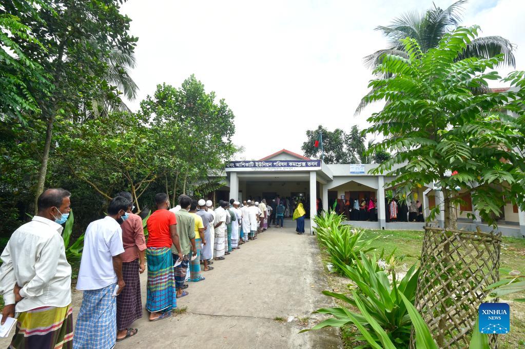 People queue up to receive Chinese COVID-19 vaccines outside a vaccination center in Chandpur, Bangladesh, Sept. 7, 2021. (Xinhua)