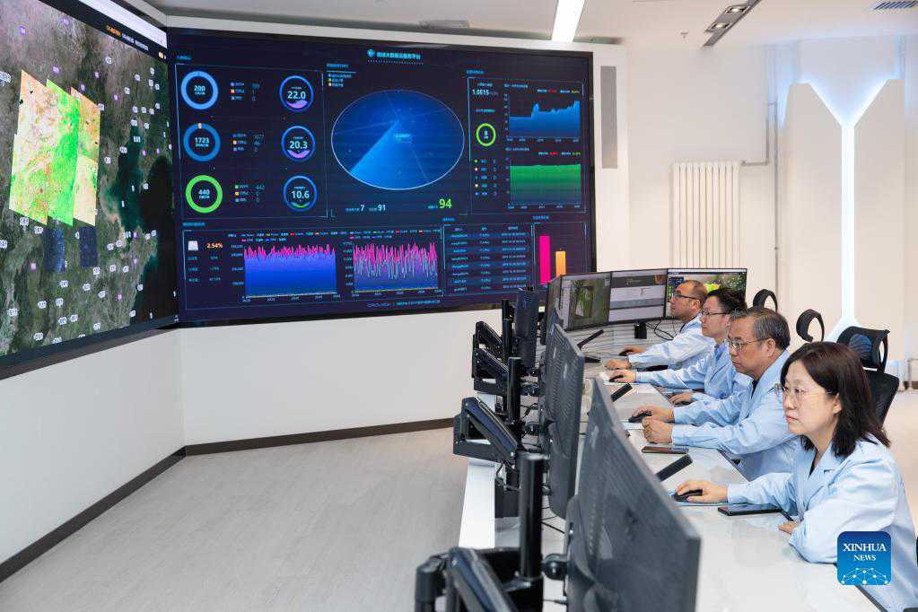 Researchers work at the International Research Center of Big Data for Sustainable Development Goals (SDGs) in Beijing, capital of China, Sept. 8, 2021. The International Research Center of Big Data for SDGs was inaugurated in Beijing on Sept. 6 to support the UN 2030 Agenda for Sustainable Development. (Xinhua/Jin Liwang)