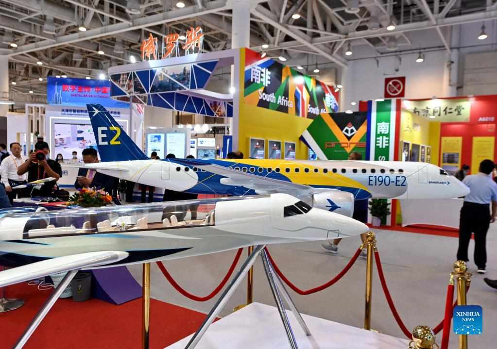 Photo taken on Sept. 8, 2021 shows models of jets during an exhibition on BRICS New Industrial Revolution held in Xiamen, southeast China's Fujian Province. An exhibition on BRICS New Industrial Revolution kicked off in Xiamen, a port city in southeast China's Fujian Province on Wednesday. The exhibition covers an area of 10,000 square meters. BRICS is the acronym for an emerging-market bloc that groups Brazil, Russia, India, China and South Africa. (Xinhua/Lin Shanchuan)