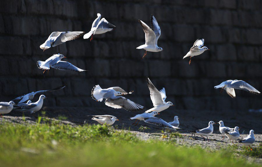 Photo taken on Nov. 11, 2020 shows black-headed gulls near the Jijiang Yangtze River Bridge in Jiangjin District of southwest China's Chongqing Municipality.(Xinhua/Wang Quanchao)