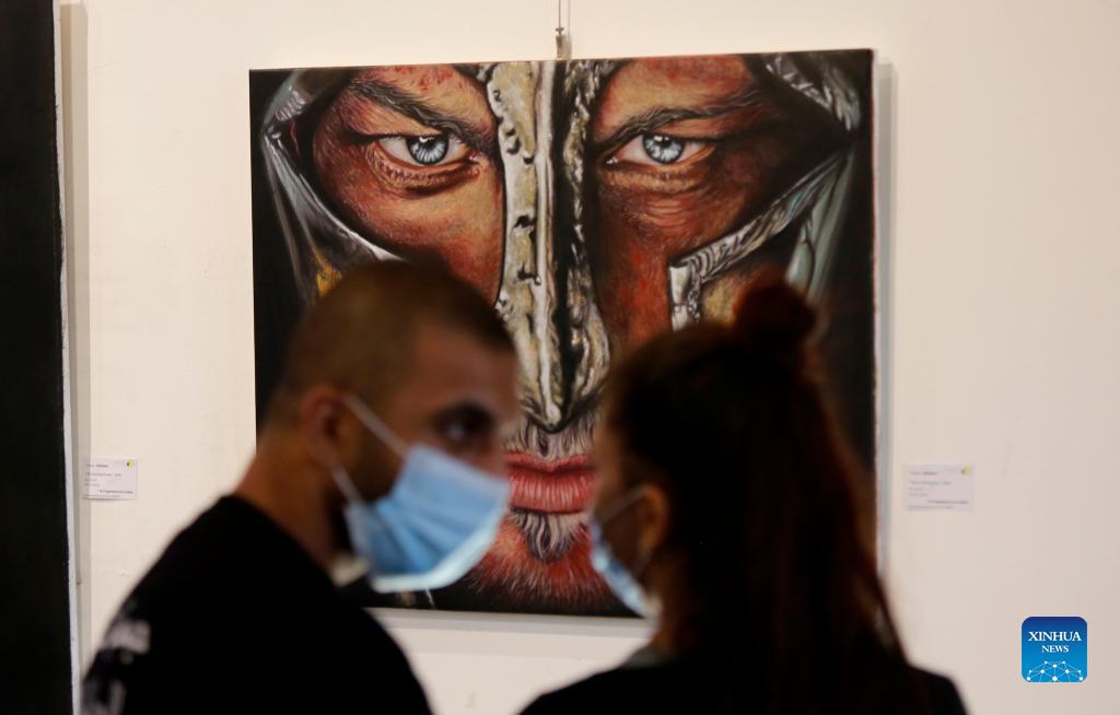 People visit an art exhibition in Beirut, Lebanon, on Sept. 8, 2021. (Xinhua/Bilal Jawich)