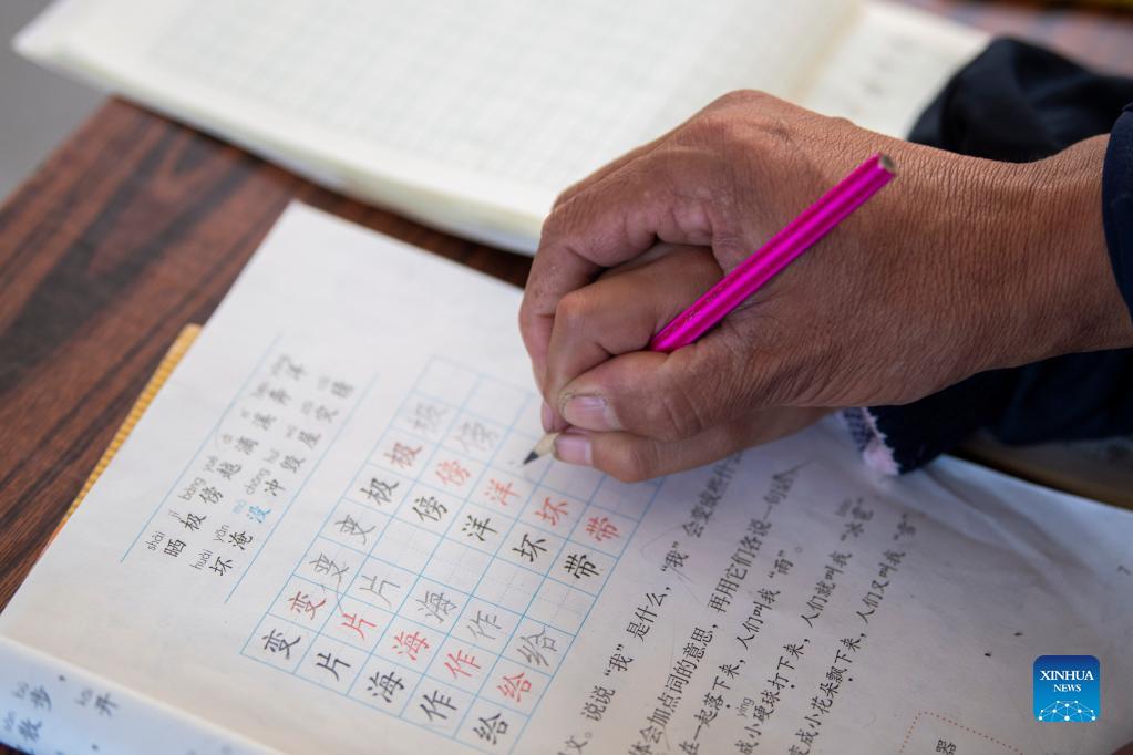 Song Zhongsheng tutors a student with her homework at Datuo teaching site in Datuo Village, Pingshun County, Changzhi City of north China's Shanxi Province, Sept. 7, 2021. Nestled deeply in the Taihang Mountain at an elevation of 1,600 meters in Pingshun County, the Datuo teaching site is the only educational facility within 10 kilometers reach. Song Zhongsheng and his wife Li Yuemei, the only faculty at the site, have been working there for 16 years in a row, currently rendering their services to merely five students of varying ages. A perfect team of two, Song is responsible for classes of Chinese, political science, and physical education, as Li takes on mathematics, painting, and music. More often than not, they need to walk some of their students' home after a full day's work at site. "Education is a life changer. We are willing to devote our time here, serving as a bridge for these kids to walk out of the mountain." (Xinhua/Yang Chenguang)