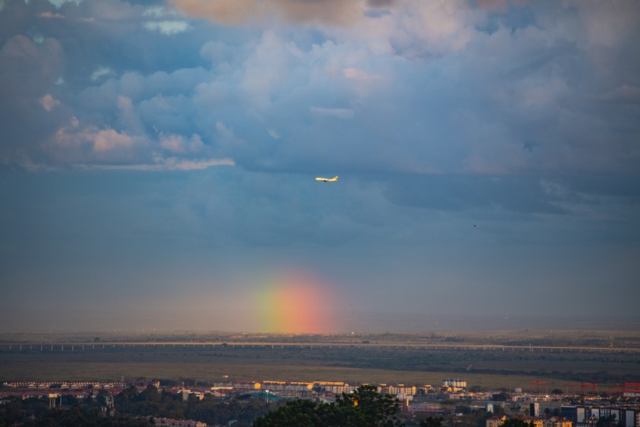 Photo taken on April 24, 2021 shows the Chinese-built Mombasa-Nairobi Standard Gauge Railway in Kenya. (Xinhua/Li Yan)