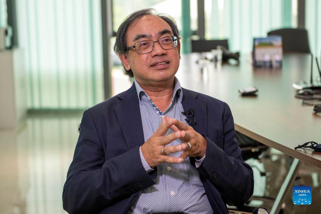 Malaysian pharmaceutical company Solution Biologics deputy group managing director Mohd Nazlee Kamal speaks during an interview with Xinhua at Solution Biologics factory in Kuala Lumpur, Malaysia, Sept. 8, 2021. Chinese company CanSino Biologics has helped Malaysia cross another milestone in vaccine manufacturing, this time by transferring technology to enable the local "fill and finish" of the COVID-19 vaccine based on the adenovirus platform. Malaysian pharmaceutical company Solution Biologics deputy group managing director Mohd Nazlee Kamal told Xinhua that close and friendly cooperation with CanSino has made the venture possible. (Photo by Chong Voon Chung/Xinhua)
