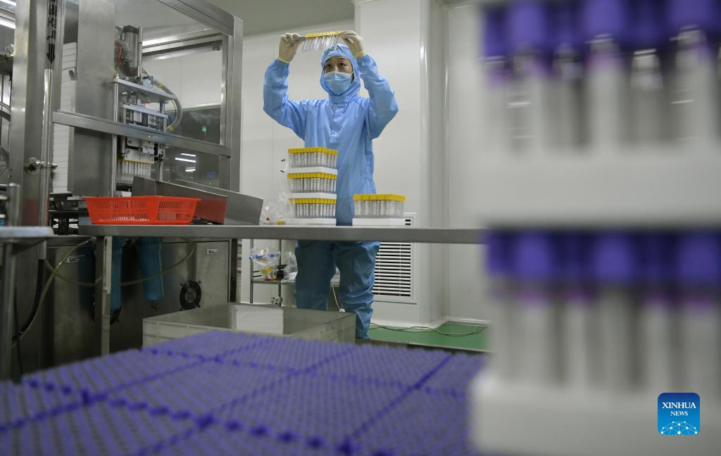 A staff member works at a pharmaceutical packaging material enterprise in Cangxian County, north China's Hebei Province, Sept. 9, 2021. There are more than 1,000 pharmaceutical packaging materials manufacturers in Cangxian County. (Xinhua/Luo Xuefeng)