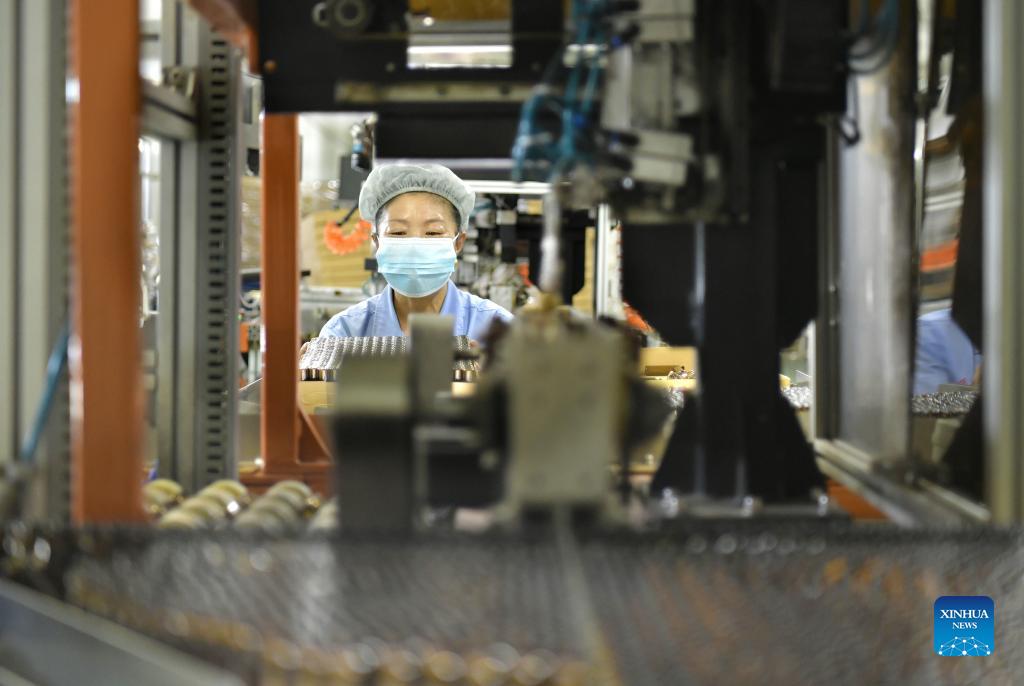 A staff member works at a pharmaceutical packaging material enterprise in Cangxian County, north China's Hebei Province, Sept. 9, 2021. There are more than 1,000 pharmaceutical packaging materials manufacturers in Cangxian County. (Xinhua/Luo Xuefeng)