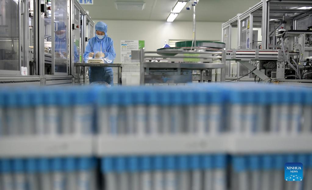 A staff member works at a pharmaceutical packaging material enterprise in Cangxian County, north China's Hebei Province, Sept. 9, 2021. There are more than 1,000 pharmaceutical packaging materials manufacturers in Cangxian County. (Xinhua/Luo Xuefeng)