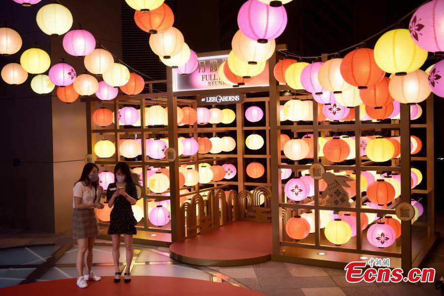 Residents visit a lantern show displayed at the Hysan Place in the Causeway Bay, Hong Kong Special Administrative Region, September 9, 2021. The lantern show was held as a prelude for the upcoming Mid-Autumn Festival, a traditional Chinese festival falling on Sept. 21 this year. (Photo: China News Service/ Li Zhihua)