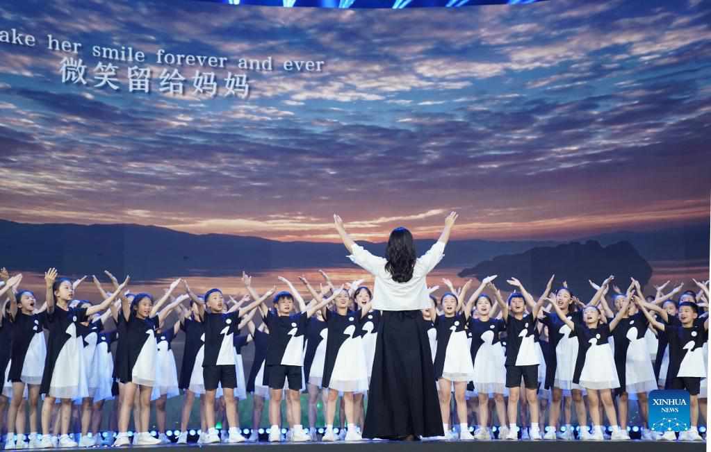Chorus members perform at the 30 days countdown ceremony of the 15th meeting of the Conference of the Parties to the UN Convention on Biological Diversity (COP15) in Kunming, southwest China's Yunnan Province, Sept. 11, 2021. The meeting, which is set to kick off in Kunming on Oct. 11, will review the "post-2020 global biodiversity framework" to draw a blueprint for biodiversity conservation in the future. (Photo by Liang Zhiqiang/Xinhua)