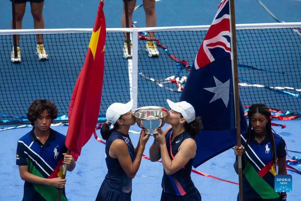 NEW YORK, Sept. 12 (Xinhua) -- China's Zhang Shuai and Samantha Stosur of Australia won the U.S. Open women's doubles title by defeating American teen pair Coco Gauff and Catherine McNally 6-3, 3-6, 6-3 here on Sunday.