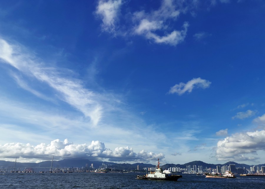 Photo taken with a phone shows a view by the Victoria Harbor in Hong Kong, south China, July 5, 2020. (Xinhua/Li Gang)