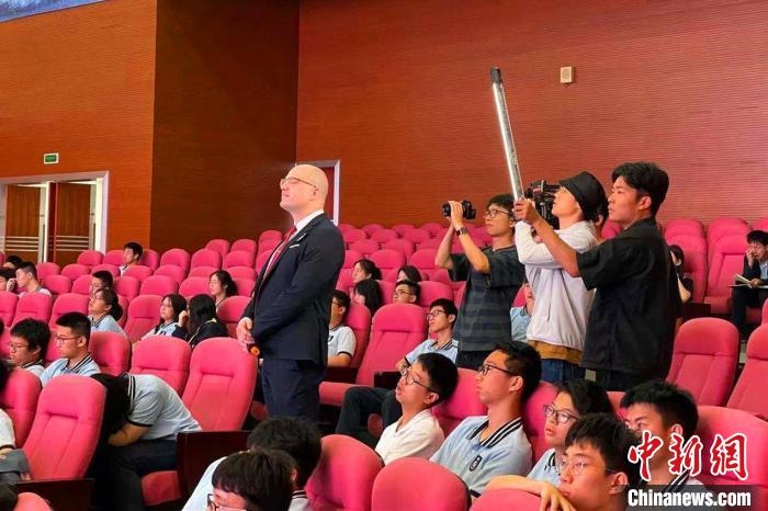 Photo shows Jordon Stanley standing in a conference hall. (Photo courtesy of the Office of Foreign Affairs of the People's Government of Jiangxi Province)