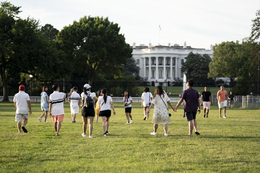 People wander near the White House in Washington, D.C., the United States, June 22, 2021. (Xinhua/Liu Jie)