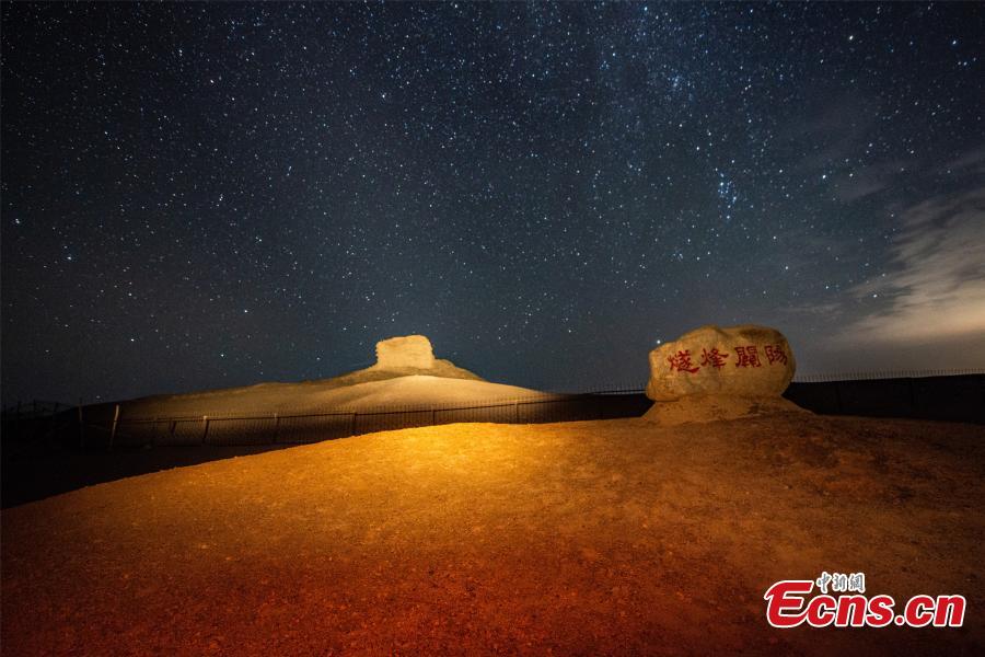 Starry night adds charm to Yangguan Pass in NW China's Gansu (8)