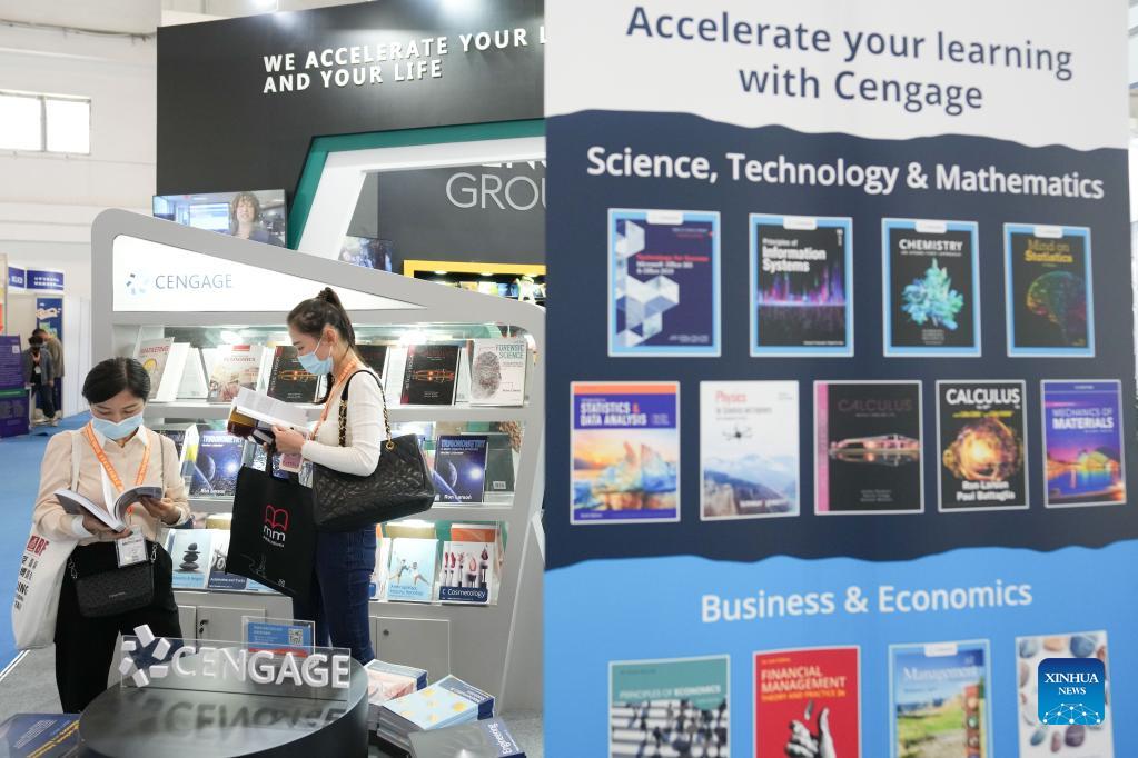 People visit the 28th Beijing International Book Fair in Beijing, capital of China, Sept. 14, 2021. The book fair kicked off Tuesday and is scheduled until Sept. 18. It has attracted roughly 2,200 exhibitors from 105 countries and regions, including 57 along the Belt and Road, said the organizer, adding that over 300,000 books are on display. (Xinhua/Ju Huanzong)