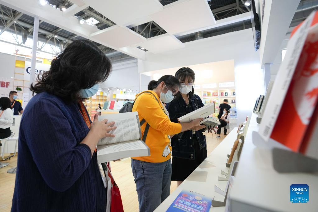 People visit the 28th Beijing International Book Fair in Beijing, capital of China, Sept. 14, 2021. The book fair kicked off Tuesday and is scheduled until Sept. 18. It has attracted roughly 2,200 exhibitors from 105 countries and regions, including 57 along the Belt and Road, said the organizer, adding that over 300,000 books are on display. (Xinhua/Ju Huanzong)