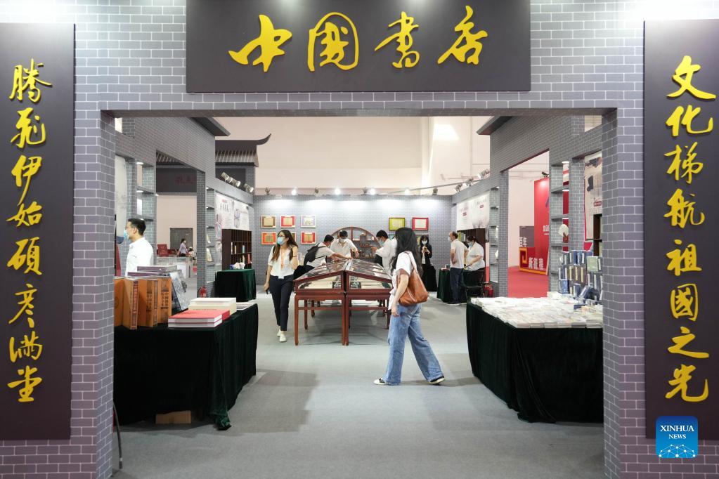 People visit the 28th Beijing International Book Fair in Beijing, capital of China, Sept. 14, 2021. The book fair kicked off Tuesday and is scheduled until Sept. 18. It has attracted roughly 2,200 exhibitors from 105 countries and regions, including 57 along the Belt and Road, said the organizer, adding that over 300,000 books are on display. (Xinhua/Ju Huanzong)