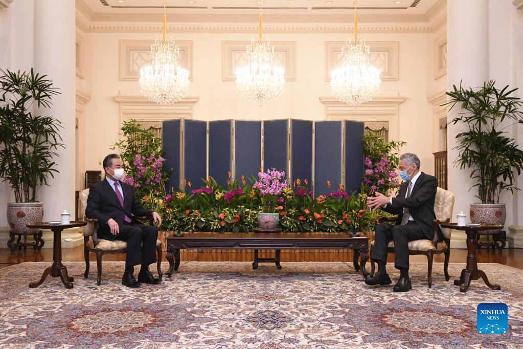 Wang said that China is willing to join hands with Singapore to strengthen mutual trust and deepen exchanges in the post-pandemic era, so as to further enhance mutually beneficial cooperation in various fields, and contribute to regional and global peace, stability and development.