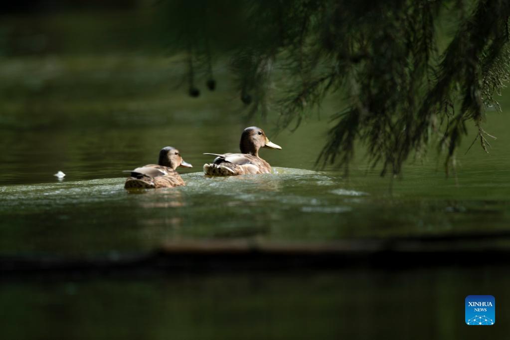 Birds are seen at the Chishan Lake National Wetland Park in Chuzhou, east China's Anhui Province, Sept. 14, 2021. After years of ecological restoration, the Chishan Lake National Wetland Park has become a paradise of birds and fowls. (Xinhua/Cao Li)