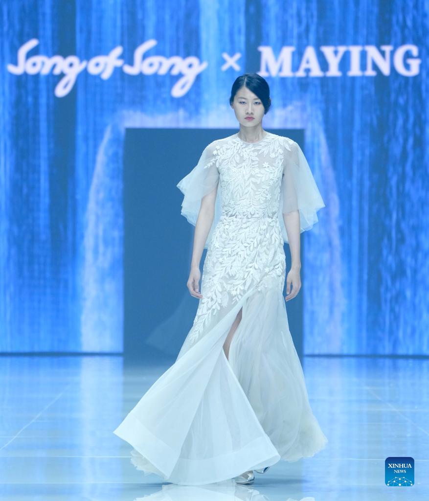 A model presents creations by designer Ma Ying at the closing show of the China Fashion Week in Beijing, capital of China, Sept. 13, 2021. (Xinhua/Chen Jianli)