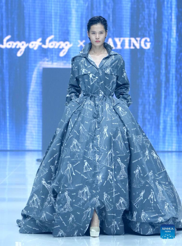 A model presents creations by designer Ma Ying at the closing show of the China Fashion Week in Beijing, capital of China, Sept. 13, 2021. (Xinhua/Chen Jianli)