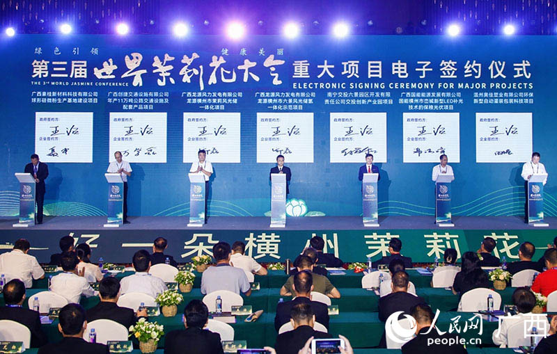 A total of seven projects worth over 13.6 billion yuan (about $2.1 billion) were inked on Sept. 12 at the opening ceremony of the third World Jasmine Conference held in Hengzhou city, south China’s Guangxi Zhuang Autonomous Region.