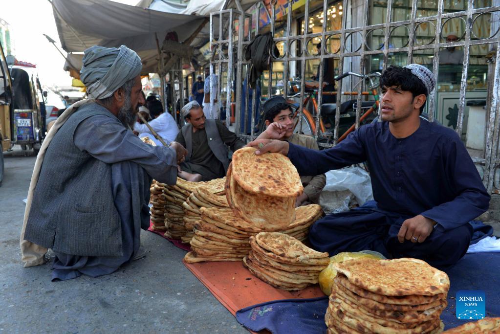 An Afghan vendor sells food for consumers in Kandahar city, southern Afghanistan, Sept. 14, 2021. (Photo by Sanaullah Seiam/Xinhua)